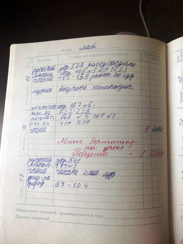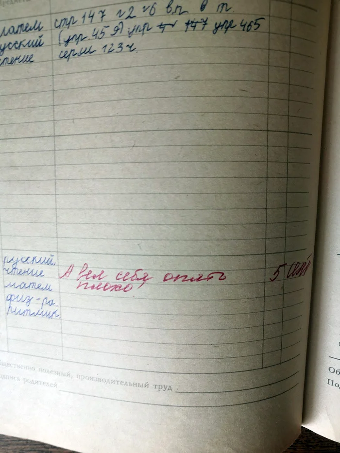 В них можно было найти всё: аккуратные каллиграфические записи учителей, смешные и нелепые комментарии, а иногда и такие фразы, что сегодня они бы разошлись по мемам. Для меня они стали своеобразной хроникой школьной жизни, где вперемешку были и радости, и неприятности, и просто повседневные мелочи.