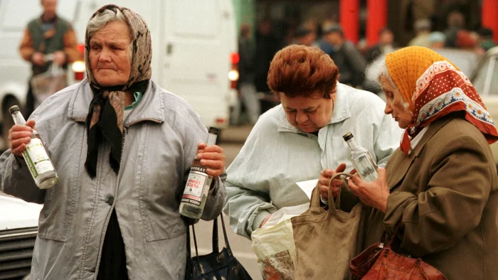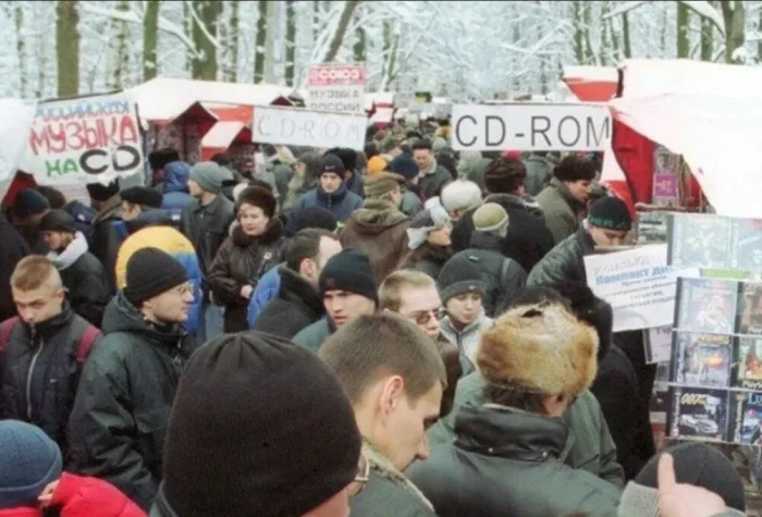 В начале 1990-х годов на белорусско-польской границе в Бресте была запечатлена очередь "челноков", показывая торговые потоки между странами.
