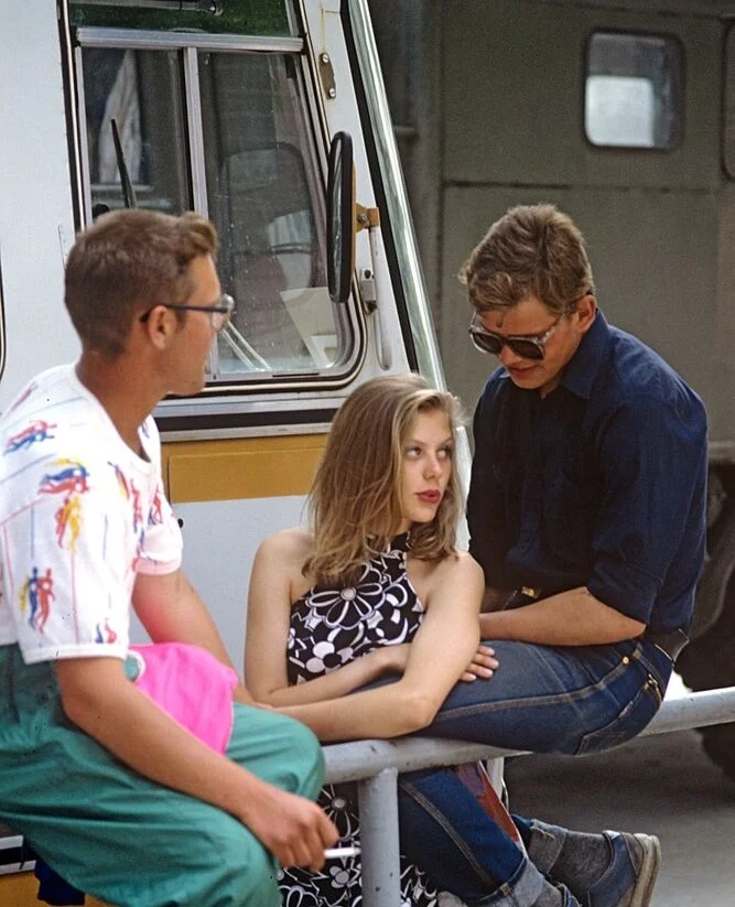 Фанатки группы «Depeche Mode» на фоне плакатов с группой, середина 1990-х.