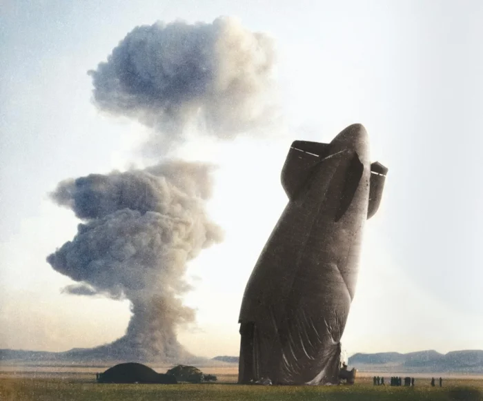 Крушение дирижабля как следствие взрыва атомной бомбы, Невада, 1957 год.