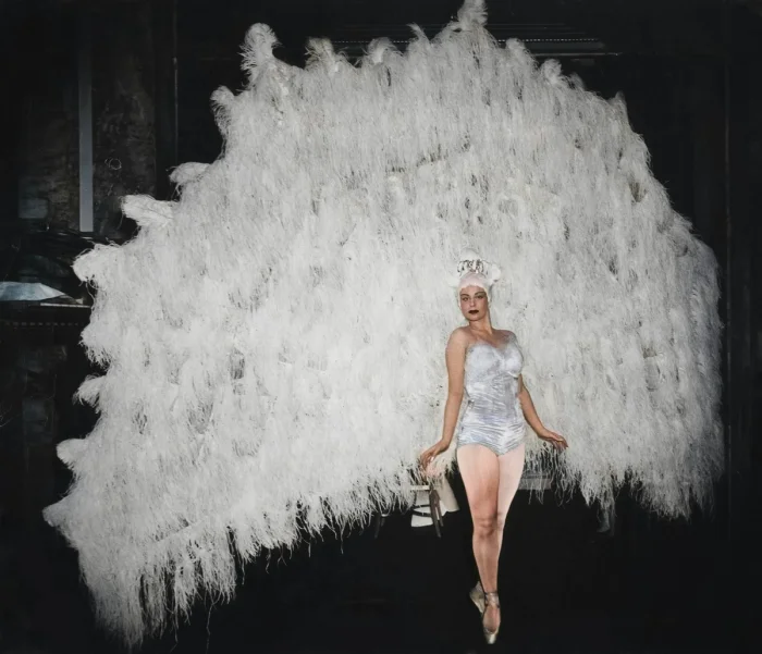 На балу в фешенебельной гостинице «Уолдорф-Астория» балерина Марина Франка в костюме павлина, Манхэттен, Нью-Йорк, 1941 год.