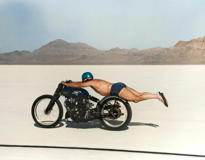 Чтобы достичь максимальной скорости, ключевым фактором стало снижение аэродинамического сопротивления. 47-летний гонщик, управляя своим Vincent HRD Black Shadow, максимально прижался к баку, принимая почти горизонтальную позицию. Но и это было не всё — для уменьшения сопротивления воздуха он решил выступить в совсем уж нетипичном для гонок образе: его экипировка состояла лишь из одних плавок и шлема.