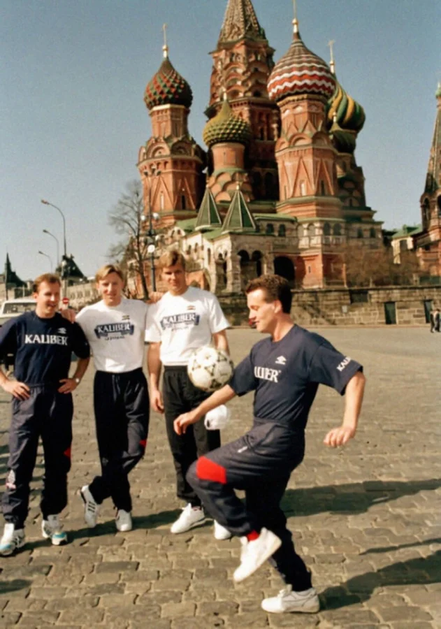 3. Футболисты сборной Англии на Красной площади в Москве, 28.04.1992 г. Через день состоялся матч СНГ - Англия со счетом - 2:2.