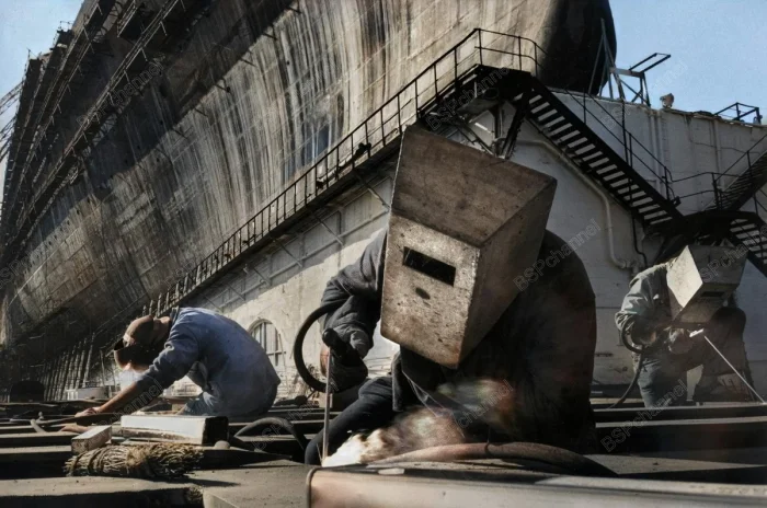Строительство теплохода «Франс», Сен-Назэр, Франция, 1959 год.