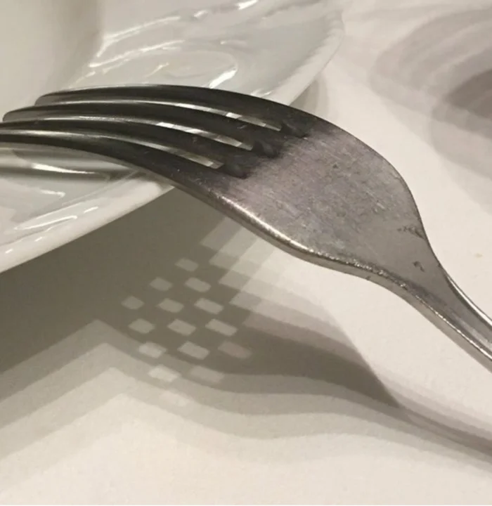 На этой фотографии тени превратили вилку в решетку, создавая геометрическую иллюзию.
