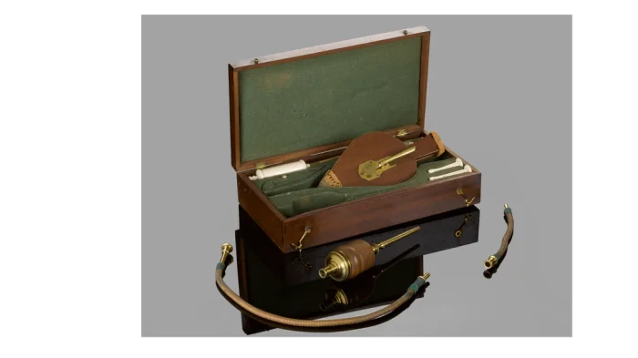 Набор для реанимации с помощью табачной клизмы, популярный в XVIII и XIX веках. Одно из первых известных упоминаний об использовании табачных клизм относится к 1746 году. Когда из Темзы вытащили жену мужчины, потерявшую сознание, проходивший мимо моряк дал мужчине свою трубку с табаком и велел сделать ей клизму, после чего женщина якобы быстро пришла в сознание. Табачные клизмы в то время регулярно использовались для оживления утопающих, лечения головных болей, судорог, грыж, брюшного тифа и холеры. Эта практика использовалась до тех пор, пока в 1811 году медицинские исследования не показали, что табачный дым оказывает негативное воздействие на сердечную систему, что привело к снижению его популярности.