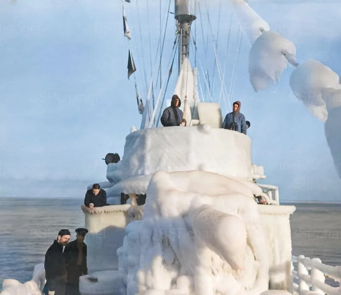 Эсминец ВМС США USS Anoka после шторма, Алеутские острова, 1943 год.
