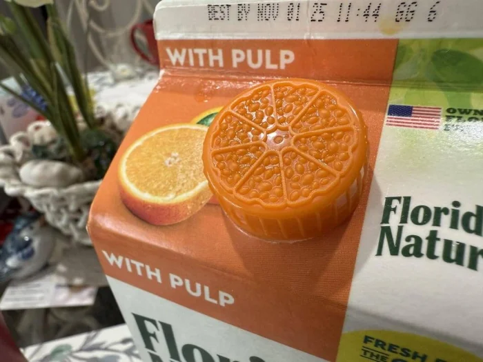 Неожиданный дизайн крышки от сока – стилизация под апельсин