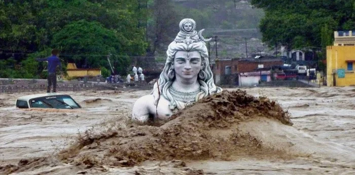 10. Затопленная статуя бога Шивы во время наводнения в водах реки Ганг, 17 июня 2013 г.