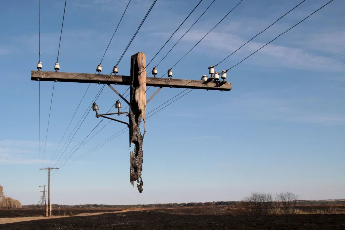14. Опора воздушных линий электропередач после пожара