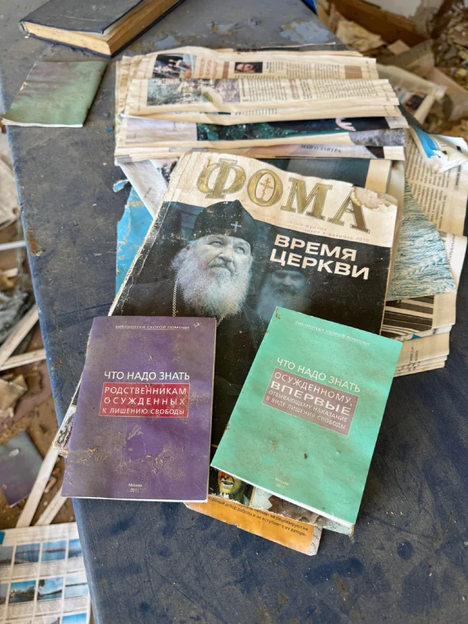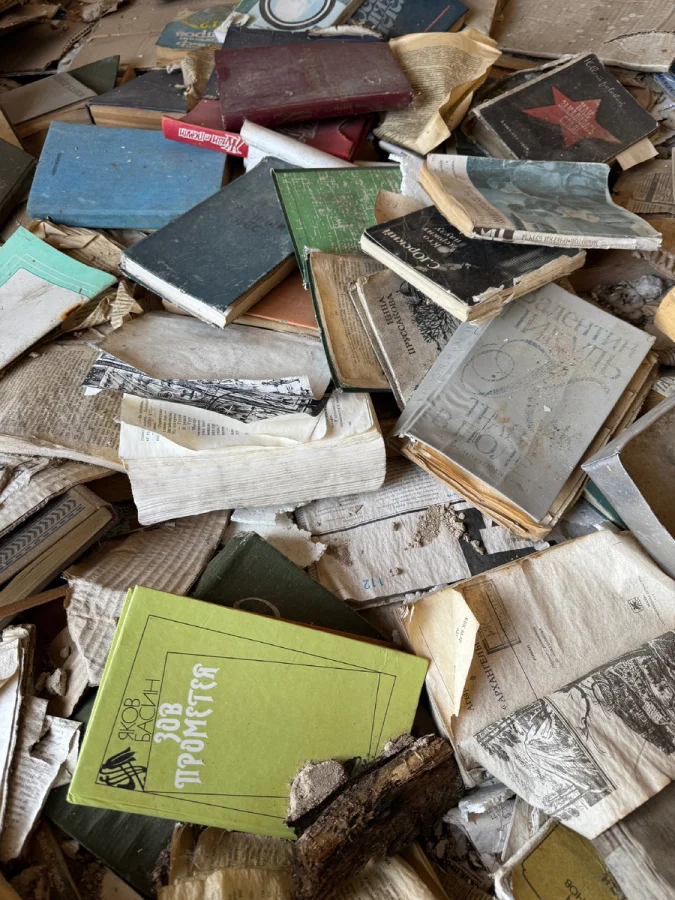 Внутри остались пустые коробки с логотипом «Почты России» и несколько книг, напоминающих о некогда существовавшей здесь библиотеке.