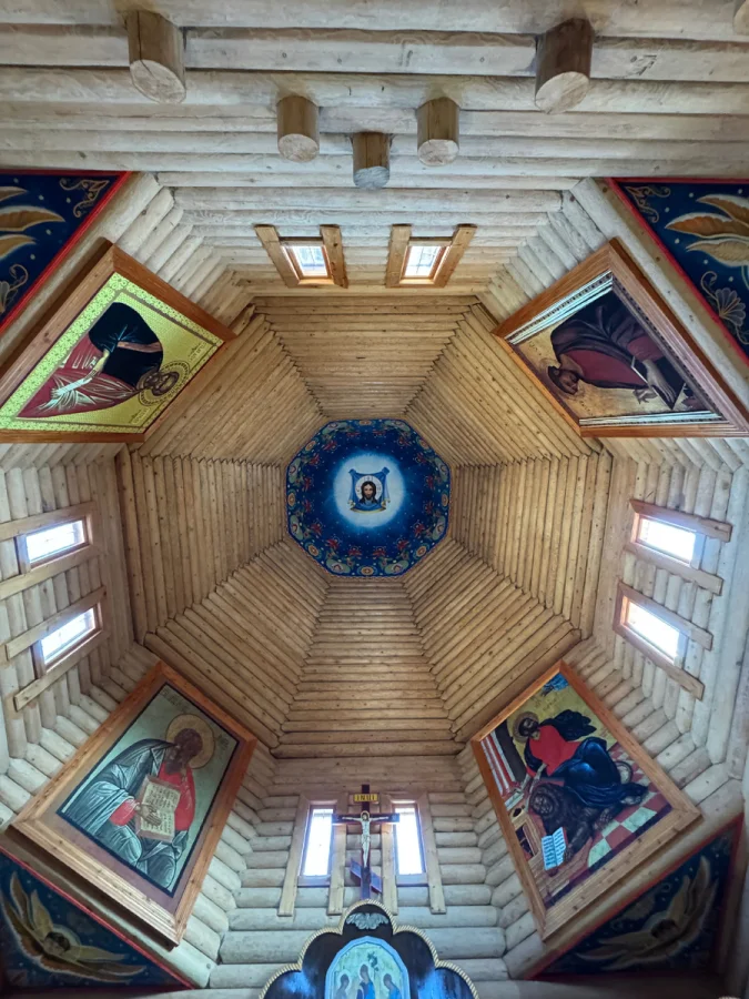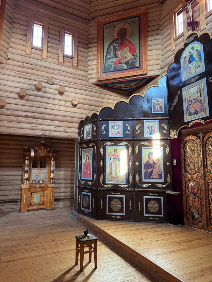Она была построена по инициативе самих заключенных и их же руками. Сруб, внутренняя и внешняя отделка, даже иконы — все это создано без помощи специалистов со стороны. Примечательно, что строительство было выполнено без единого гвоздя.