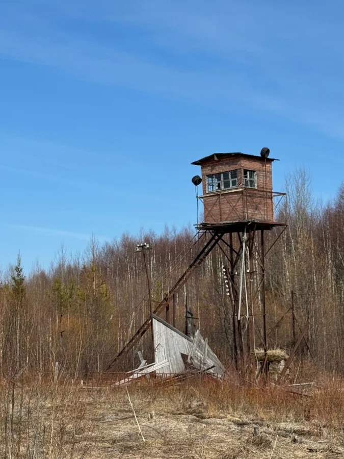 Первым пунктом нашего маршрута станет территория бывшей колонии строгого режима, расположенная в нескольких сотнях километров от Сыктывкара — столицы Республики Коми. Попасть сюда теперь несложно: деревянный забор прогнил и рухнул, колючая проволока оборвалась, сторожевые вышки пустуют, а все технические средства охраны давно демонтированы.