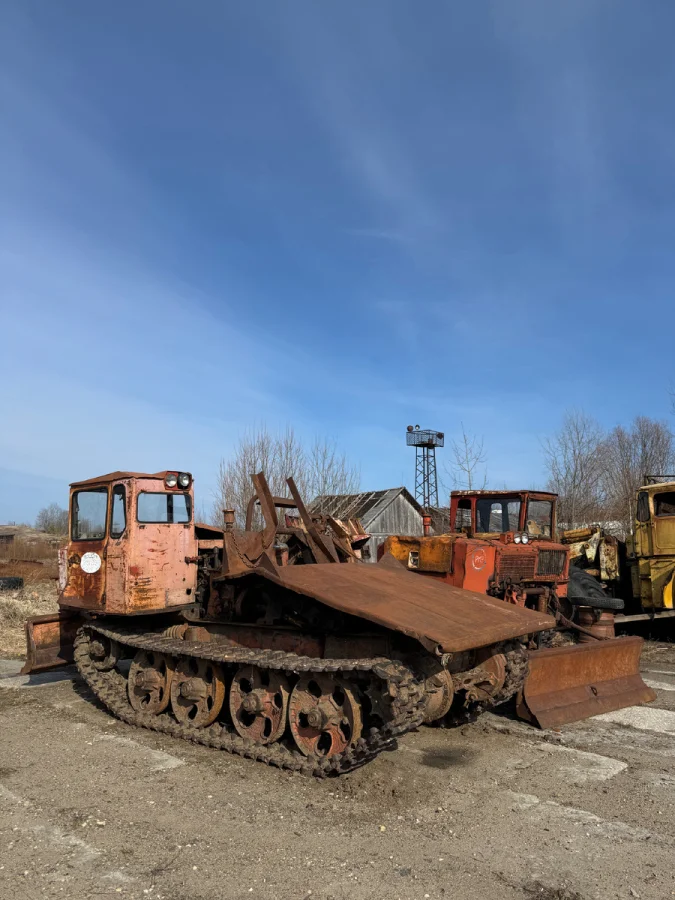 На промзоне до сих пор осталось множество ржавеющей техники, которую ремонтировали сами заключенные. Здесь можно увидеть привычные ГАЗы и ЗИЛы, а также редкие образцы тяжелой гусеничной и колесной техники, адаптированной для работы в северных условиях.
