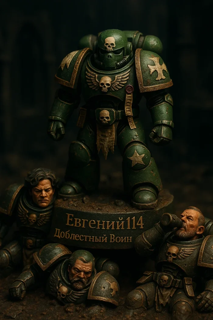 Да снизойдёт хвала на Десятку Лучших, возведённых в диораму Вечной Славы! Их образы воссозданы в стиле Warhammer 40,000 — как миниатюры героев, стоящих на основаниях из обломков комментариев и искрящихся мемов. Каждый воин — в броне из сарказма и остроумия, с печатями чистоты лайков и трофеями апвоутов, вырванных у поверженных спорщиков.