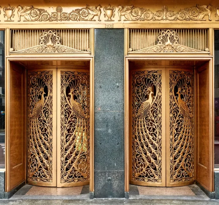6. Роскошные двери в стиле ар-деко с павлиньими мотивами на Норт-Мичиган-авеню в Чикаго (1925 год).