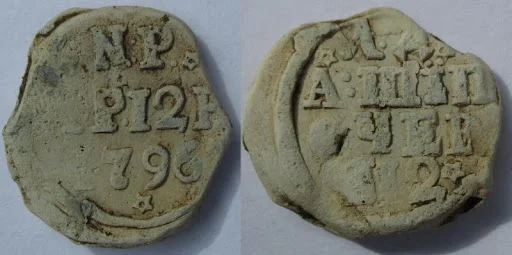 Это свинцовая пломба, которыми в XVIII–XIX веках пломбировали тюки текстиля, мехов и прочих вещей, которые экспортировали из России в Европу. Сегодня они встречаются как археологические находки и коллекционный материал.