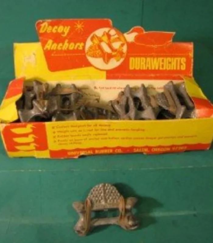 Это свинцовый груз весом 100 гр, который используют для закрепления охотничьих чучел уток или гусей на воде, чтобы они не уносились ветром или течением. Вот и коробочка с ними -