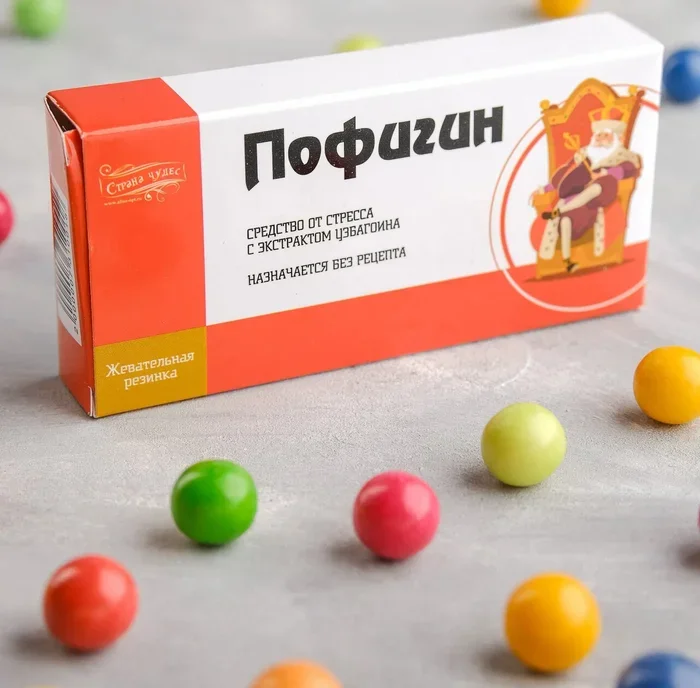 Жевательная резинка в индивидуальной дизайнерской упаковке, 20 шт. Пофигин. Ссылка на пачку