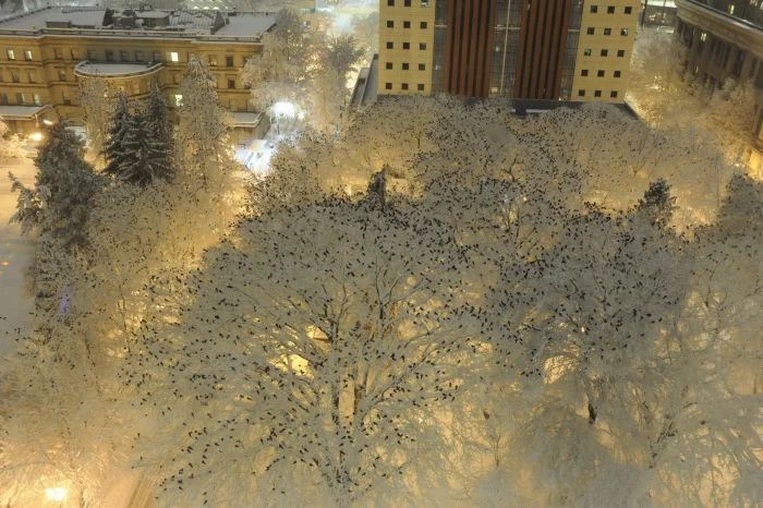 12. Вид сверху на деревья с отдыхающими воронами