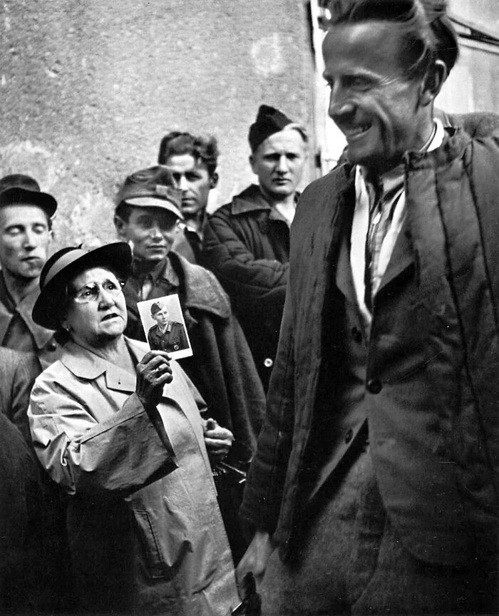 В 1947 году фотограф Эрнст Хаас запечатлел момент на Южном вокзале Вены, где мать показывает солдату фотографию пропавшего сына в надежде получить хоть какую-то информацию.