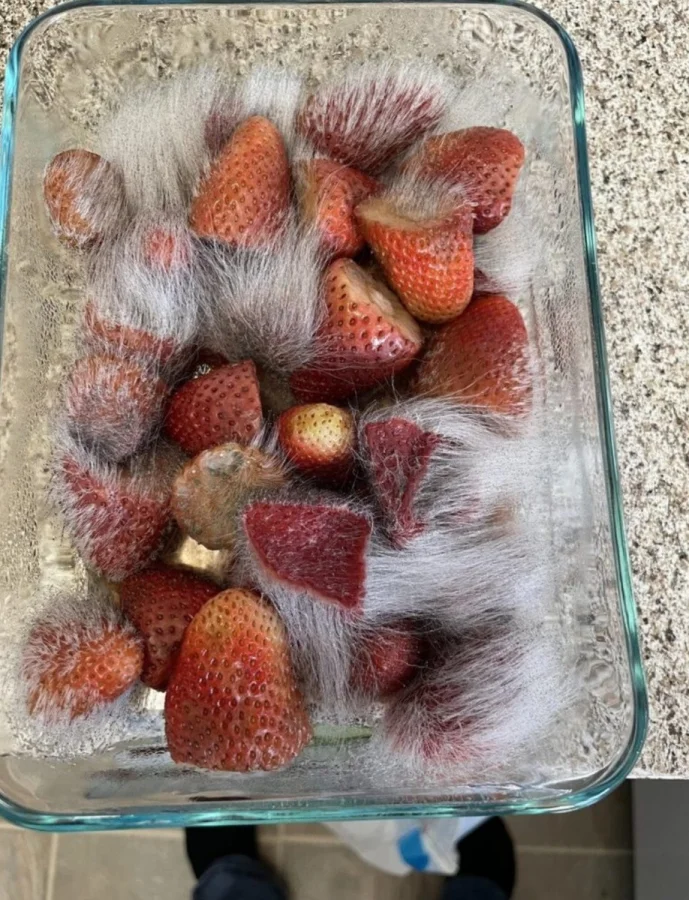 Эта клубника уже несъедобна, но плесень на ней выглядит необычно