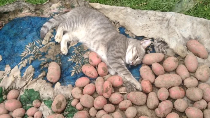 Безусловно, это настоящий тренд. Кошки — самые любимые домашние животные, а картофель — незаменимый овощ на нашем столе. Вместе они образуют настолько идеальные сочетания (особенно если пушистые друзья примеряют роль опытных огородников), что невозможно сдержать улыбку и слёзы умиления. После таких сценок хочется немедленно приласкать своего котика и приготовить что-то вкусненькое из картошки — будь то нежное пюре или ароматная жареная картошечка.