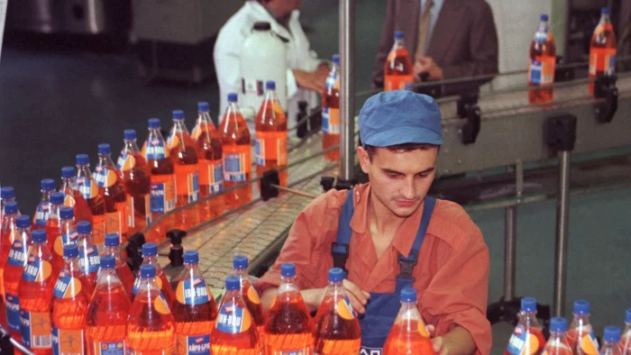 10. Открытие Московского завода прохладительных напитков "Айрн-брю". Разливочный цех завода. 1998 год.