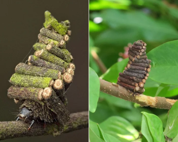 4. Гусеница-мешочница, которая создаёт на себе кокон в виде чехла и носит его всю жизнь