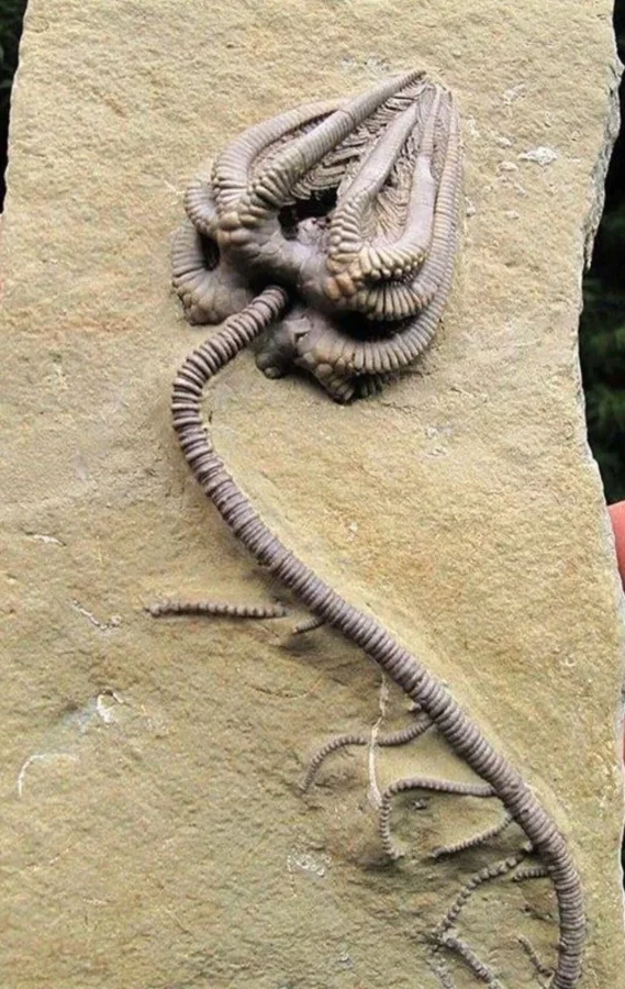 19. Окаменелость морской лилии (криноидеи), возраст которой почти 345 миллионов лет
