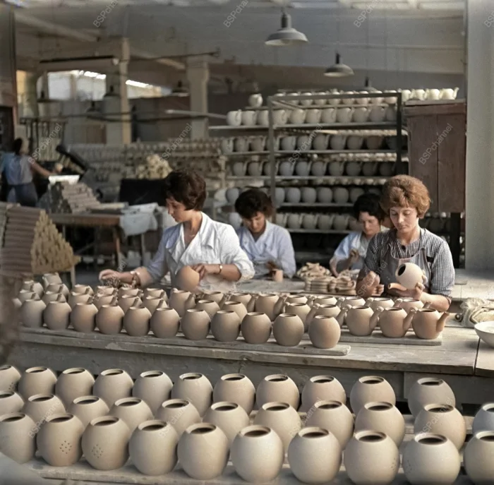 В одном из цехов Краснодарского фарфорово-фаянсового завода «Чайка», 1966 год.