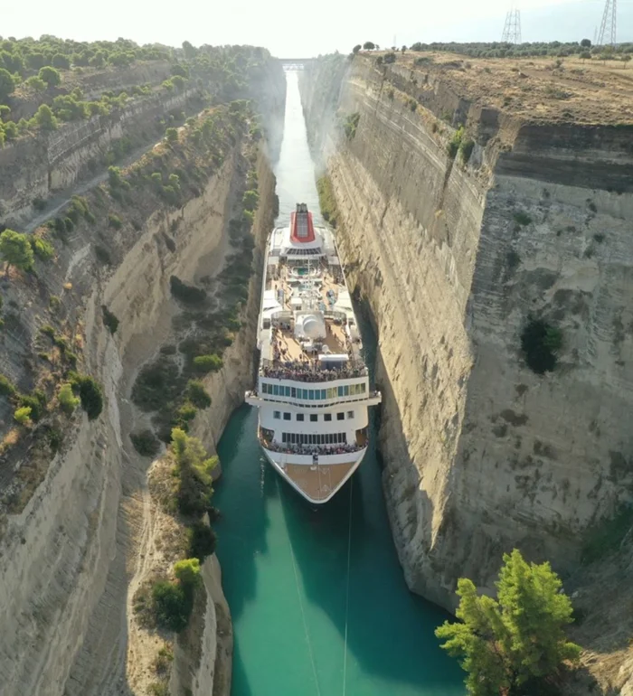 16. Грандиозный круизный лайнер в узком Коринфском канале, Греция