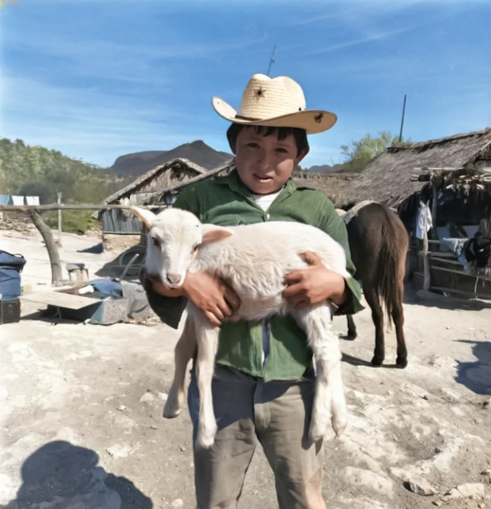 Мальчик с ягнёнком на ранчо Репресито. Мексика, 1967 год.