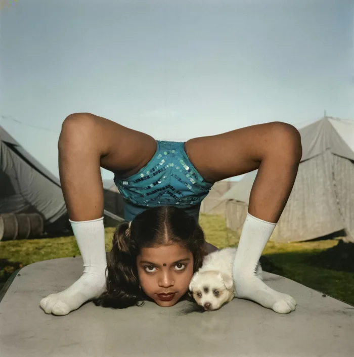 Акробатка со щенком Свити в цирке Раджа Камала. Индия, 1989 год.