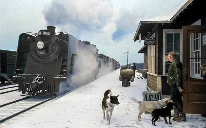 Железнодорожные пути в Онтарио. Канада, 1951 год.
