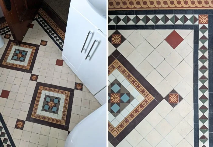 5. Под старым линолеумом в ванной я нашёл плитку эдвардианской эпохи. Моя прапрабабушка работала здесь горничной в 1880-х годах