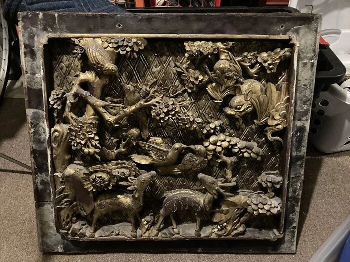 1. Женщина создала произведение искусства из старых обоев, найденных в столетнем доме её бабушки