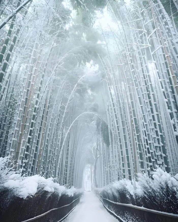 5. Зимний пейзаж бамбукового леса Арасияма в Киото, Япония