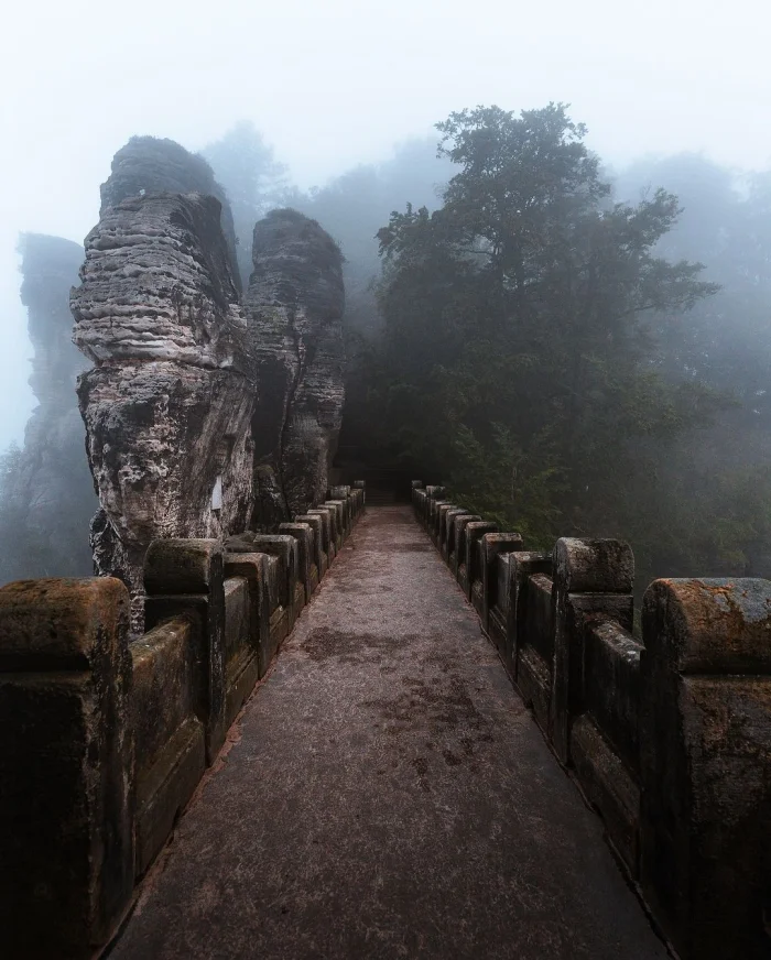 7. Бастайский мост — знаменитая достопримечательность Саксонской Швейцарии, расположенная на правом берегу реки Эльба в восточной Германии