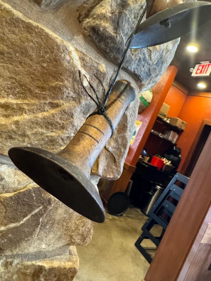 2. Металлический диск с деревянной ручкой, найденный в барбекю-ресторане