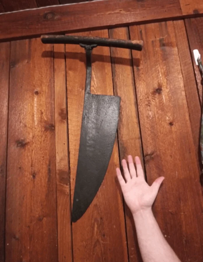 7. Железный инструмент длиной около 70 см, найденный в дупле дерева