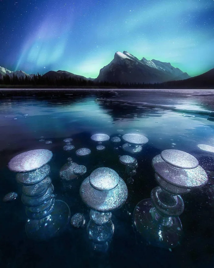 2. Уникальные ледяные образования: пузыри метана, застывшие подо льдом