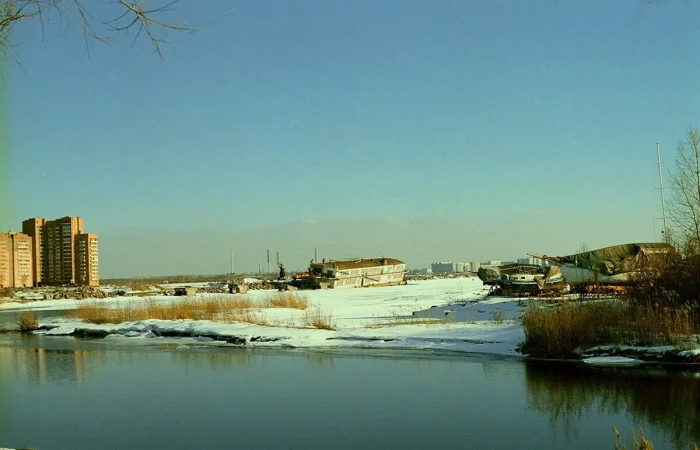 Сейчас на месте, с которого сделана фотография находится самое высокое здание в Европе - Лахта-центр, а прямо по курсу - парк 300-летия Петербурга.