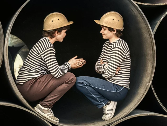 Студентки IV курса Московского института инженеров водного транспорта Елена Фивейская (слева) и Лариса Банчукова во время прохождения производственной практики в Омском речном порту. Омск, 1984 год.