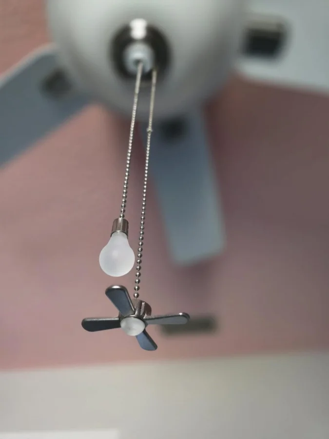 Цепочки потолочного вентилятора с миниатюрными моделями того, что они включают