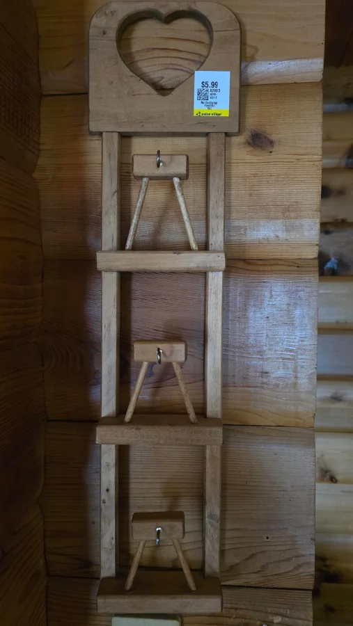 10. Деревянная настенная полка с сердечным вырезом и тремя крючками