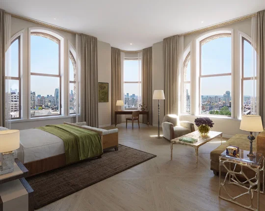 Знаменитое здание Flatiron в Нью-Йорке, известное своей уникальной архитектурой, претерпело значительные изменения: из офисного пространства оно превратилось в жилое, где теперь размещаются 38 элитных апартаментов. Дизайн интерьеров был разработан известным бюро Studio Sofield. В процессе реконструкции здание, ранее использовавшееся для офисных нужд, было адаптировано под жилые апартаменты, при этом удалось сохранить множество исторических деталей, таких как оригинальные перила. Согласно данным The New York Times, стоимость квартир в этом здании колеблется от 11 до 50 миллионов долларов.