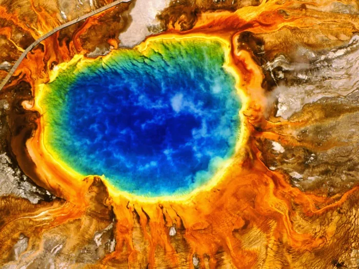 7. Большой призматический источник в США - крупнейший геотермальный водоём страны и третий по величине в мире