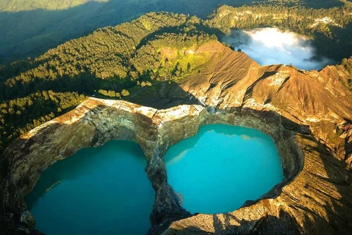 9. В кратере вулкана Келимуту (Индонезия) находятся три разноцветных озера с поэтичными названиями: "Озеро стариков", "Озеро юношей и девушек" и "Заколдованное озеро"