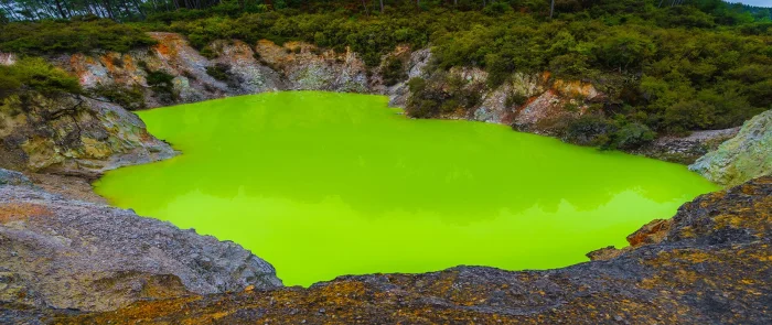 10. Новозеландский природный бассейн "Ванна дьявола" поражает насыщенными цветами, напоминающими палитру художника